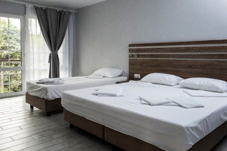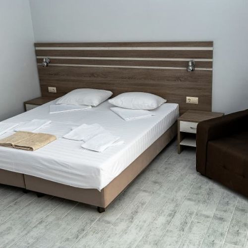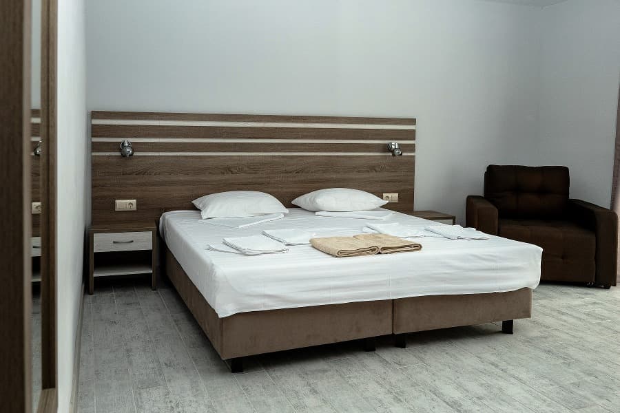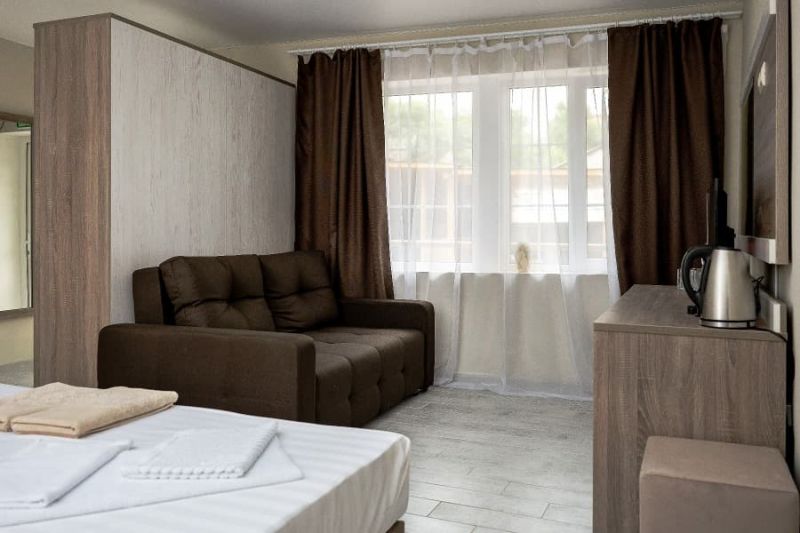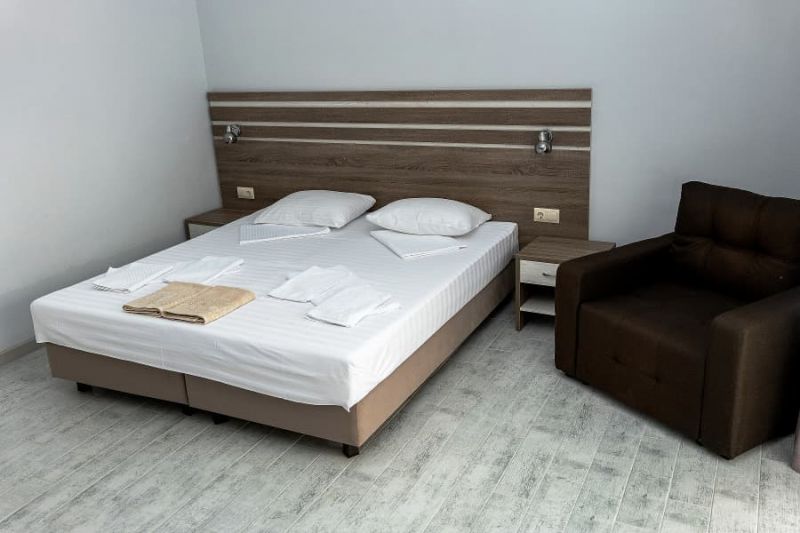 Обновленные номера гостевого дома отличаются современным интерьером, спокойной цветовой гаммой, наличием телевизора, холодильника, кондиционера, просторных ванных комнат и уютного текстиля. Гостям предоставляются туалетные принадлежности и полотенца. Отдыхающие могут воспользоваться общей летней кухней, оборудованной всем необходимым для самостоятельного приготовления завтраков, обедов и ужинов. На территории отеля имеются беседки со столами и скамейками, где можно удобно расположиться во время приема пищи. Гости могут готовить ароматные блюда на мангале самостоятельно. Все необходимое оборудование и посуда предоставляются.